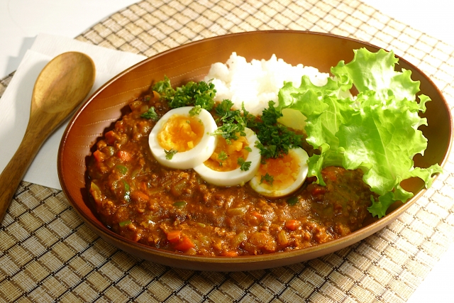 お肉入りでかけるだけ!添えるだけ!簡単キーマカレーの出来上がりです。